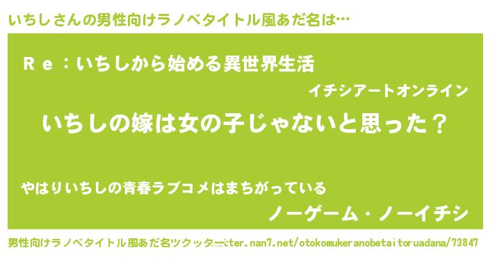 | ヒーロー風カッコイイあだ名 | 『炎刃騎士イチ』『サイバー戦士イチシ』 |