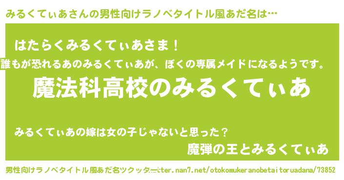 | 意味不明あだ名 | 『自称みるくてぃあ』 |