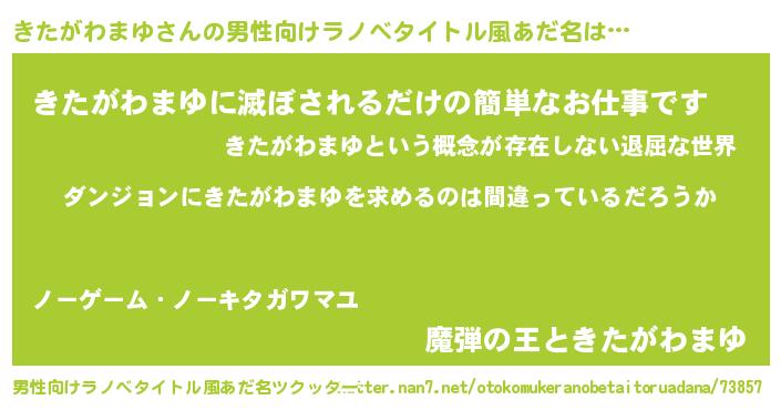 きたがわまゆさんの男性向けラノベタイトル風あだ名をツクッター!