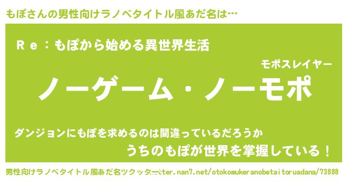 | 女子向けラノベタイトル風あだ名 | 『死神もぽの再婚』『闇のもぽ』 |