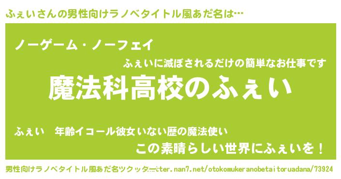 | 肩書あだ名 | 『ふぇい総統』『ふぇい助教授』 |