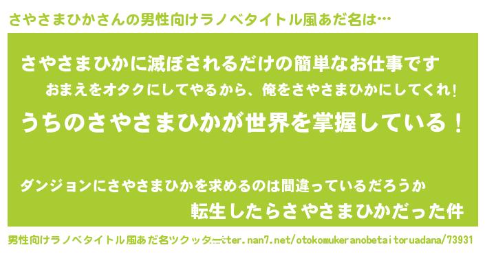 | 肩書あだ名 | 『さやさまひか船長』『さやさまひか大尉』 |