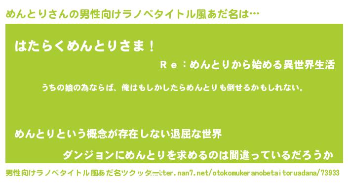 | ヒーロー風カッコイイあだ名 | 『ウルトラめんとりマン』『黄金騎士メン』 |