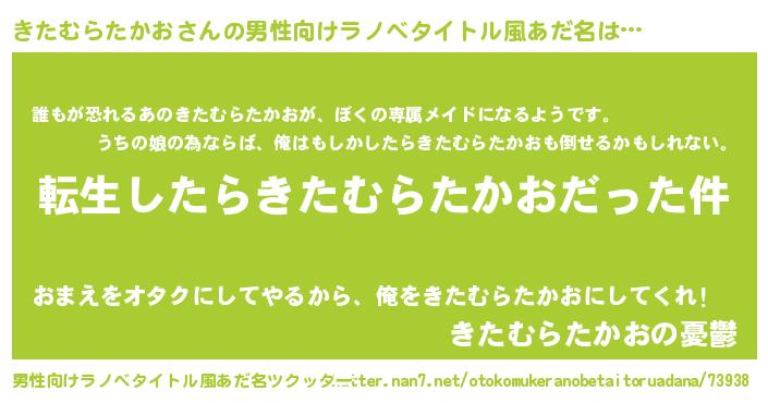 | 胡散臭い通販商品みたいなあだ名 | 『来世でも幸せになれる健康食品…その名も「きたむらたかお」』 |