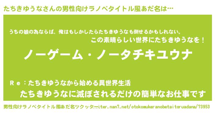 | 女子向けラノベタイトル風あだ名 | 『死神たちきゆうなの再婚』 |