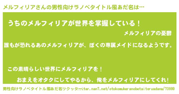 | ヘコむあだ名 | 『メルフィリア(笑)』『メルにー』 |