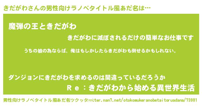 | 女子向けラノベタイトル風あだ名 | 『きだがわの婚約者』『闇のきだがわ』 |