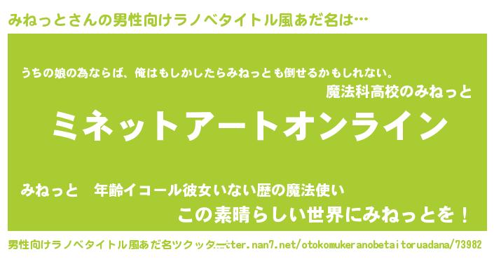 | 女子向けラノベタイトル風あだ名 | 『みねっと姫と円卓の騎士』 |