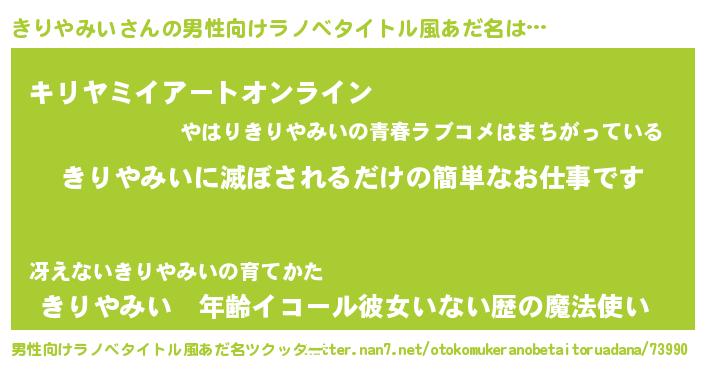 | 胡散臭い通販商品みたいなあだ名 | 『億万長者になれる水晶球…その名も「きりやみい」』 |