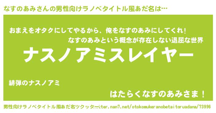| ヒーロー風カッコイイあだ名 | 『正義の使者なすのあみ』『仮面ナスダー』 |