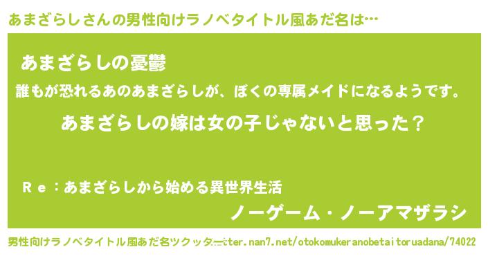 | 女子向けラノベタイトル風あだ名 | 『あまざらし様がみてる』 |