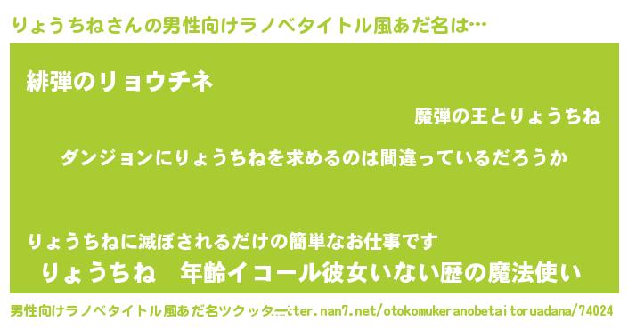| 女子向けラノベタイトル風あだ名 | 『りょうちねは平凡を望む』 |