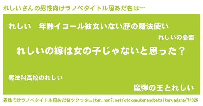 | 女子向けラノベタイトル風あだ名 | 『れしい様がみてる』 |