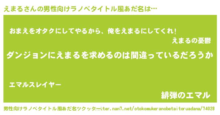| 女子向けラノベタイトル風あだ名 | 『えまるは平凡を望む』『えまる恋絵巻』 |