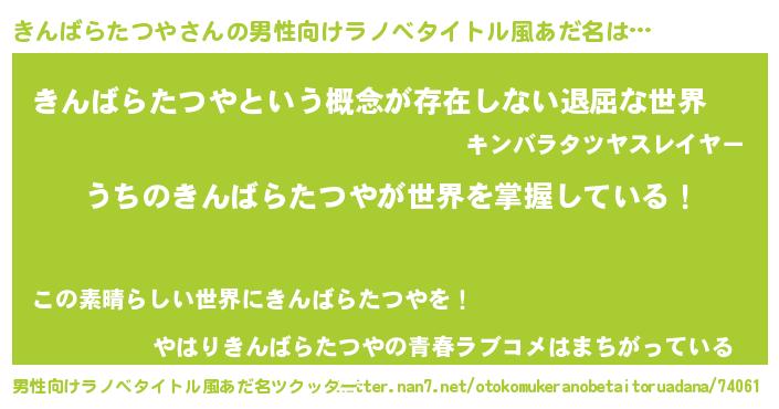 | 意味不明あだ名 | 『永久保存きんばらたつや』 |