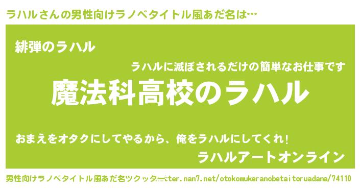 | 女子向けラノベタイトル風あだ名 | 『ラハルアンティーク』 |