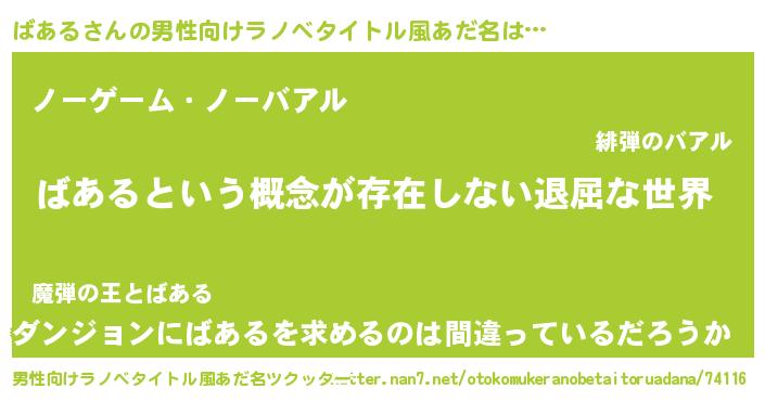 | 意味不明あだ名 | 『永久保存ばある』『自称ばある』 |