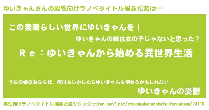 | 女子向けラノベタイトル風あだ名 | 『ゆいきゃんストレイドッグス』 |