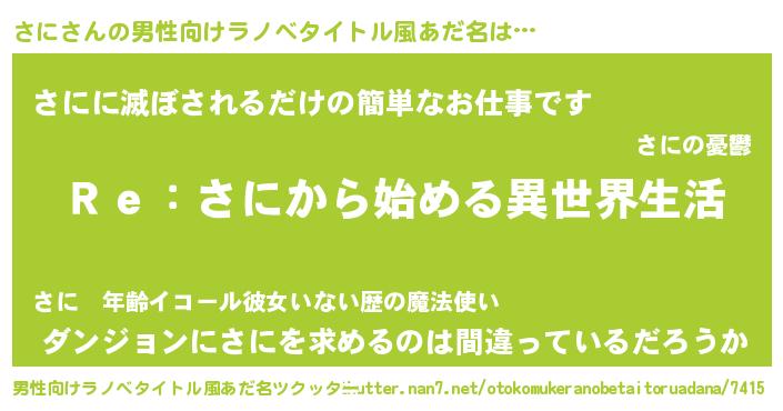 | ヒーロー風カッコイイあだ名 | 『究極戦士サニ』『暗黒騎士サニ』 |