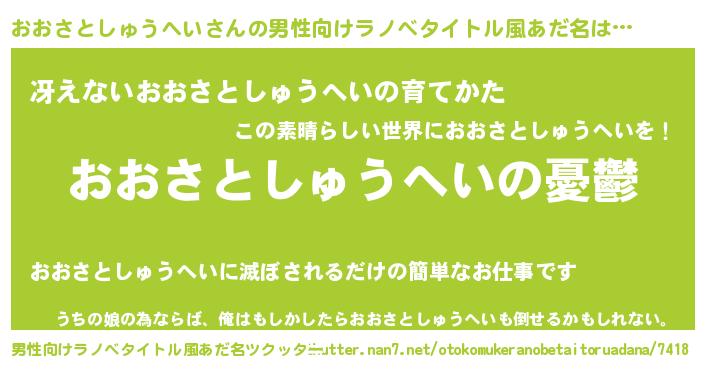| 胡散臭い通販商品みたいなあだ名 | 『モテモテ間違いなし霊験あらたかなお札…その名も「おおさとしゅうへい」』 |