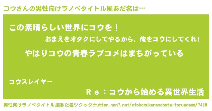 | 意味不明あだ名 | 『コウフォーエバー』『自称コウ』 |