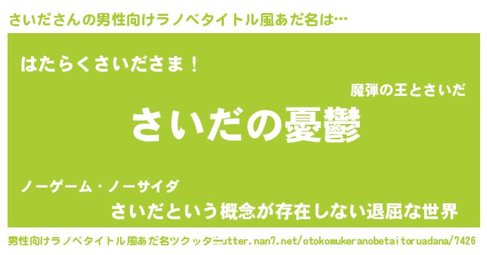 | 胡散臭い通販商品みたいなあだ名 | 『必ず成功する水晶球…その名も「さいだ」』 |