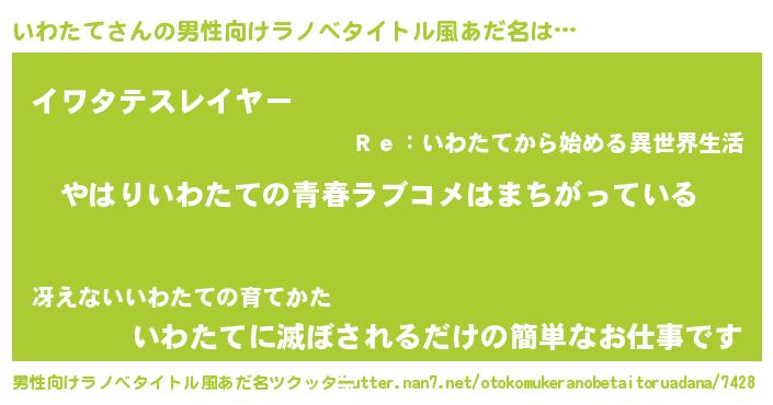 | 意味不明あだ名 | 『いわたてフォーエバー』『自称いわたて』 |