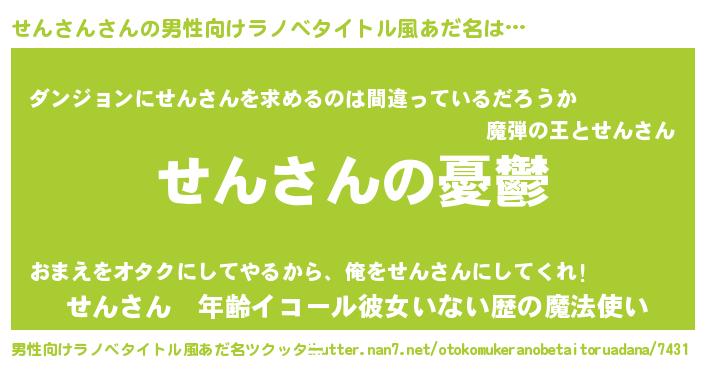 | 女子向けラノベタイトル風あだ名 | 『(仮)せんさんのやんごとなき事情』 |