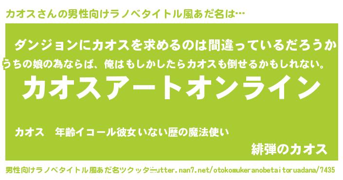| ヒーロー風カッコイイあだ名 | 『スーパーカオス』『暗黒騎士カオ』 |
