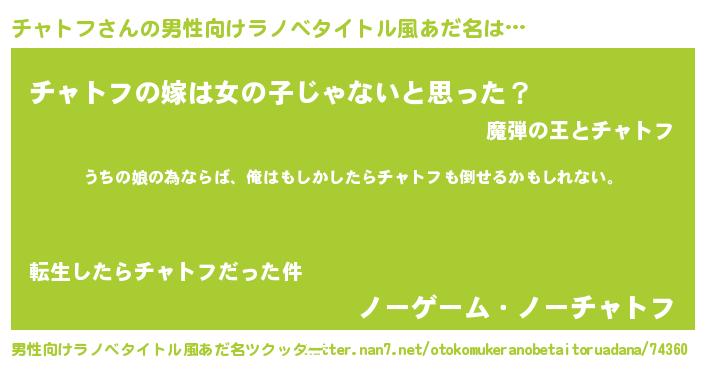 | 女子向けラノベタイトル風あだ名 | 『チャトフ伯爵の花嫁』『チャトフ恋絵巻』 |