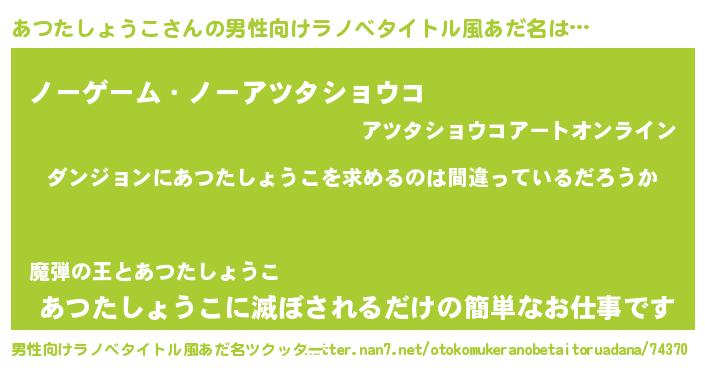| 女子向けラノベタイトル風あだ名 | 『あつたしょうこは平凡を望む』 |