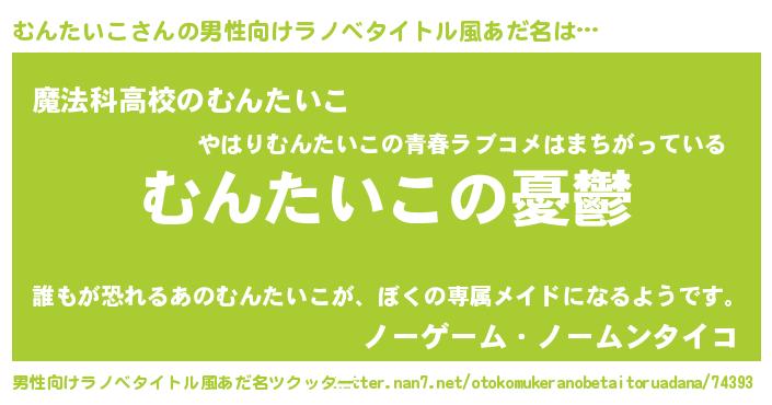| 女子向けラノベタイトル風あだ名 | 『むんたいこ姫と円卓の騎士』 |