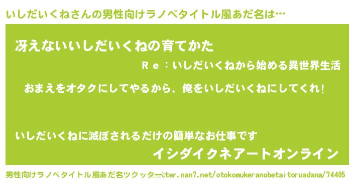 | 女子向けラノベタイトル風あだ名 | 『いしだいくね夫妻のなれそめ』 |