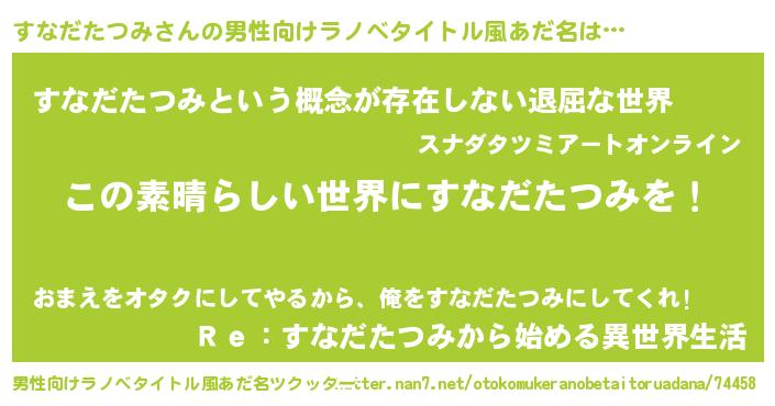 | 意味不明あだ名 | 『住所不定無職すなだたつみ(11歳)』 |
