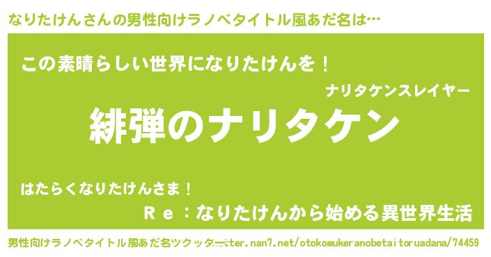 | ヒーロー風カッコイイあだ名 | 『仮面ナリダー』『最強戦士ナリタケン』 |