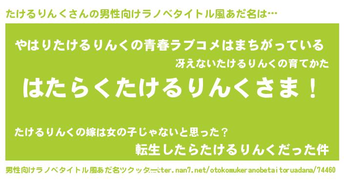 たけるりんくさんの男性向けラノベタイトル風あだ名をツクッター!