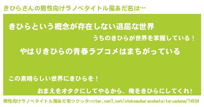 | 女子向けラノベタイトル風あだ名 | 『きひらの雑貨屋さん』 |