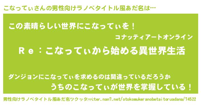 | 女子向けラノベタイトル風あだ名 | 『闇のこなってぃ』 |