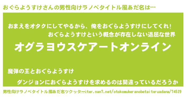 | 女子向けラノベタイトル風あだ名 | 『おぐらようすけ姫と円卓の騎士』 |