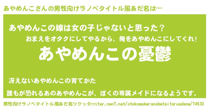 | 欧米人風あだ名 | 『マイケルあやめんこ』 |