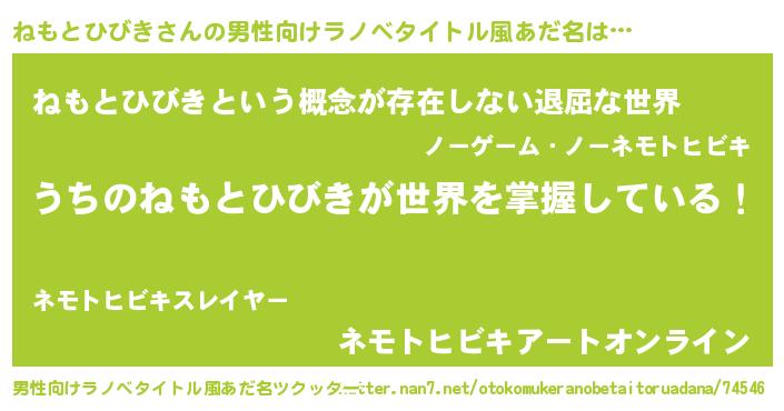 | 意味不明あだ名 | 『永久保存ねもとひびき』 |