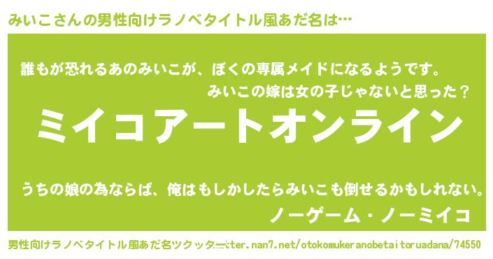 | 欧米人風あだ名 | 『マイケルみいこ』『ダルビッシュみいこ』 |