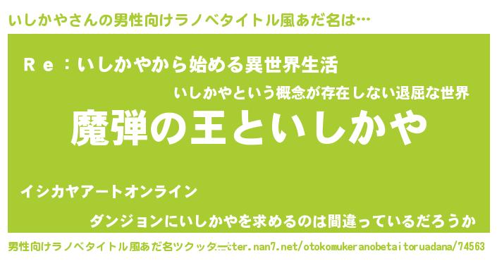 | 意味不明あだ名 | 『住所不定無職いしかや(68歳)』 |