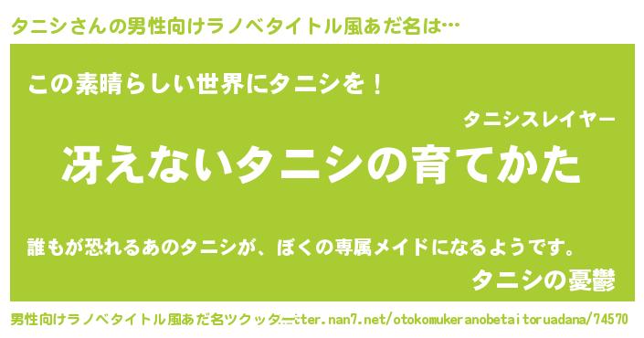 | 女子向けラノベタイトル風あだ名 | 『シンデレラタニシ家の靴箱館』 |
