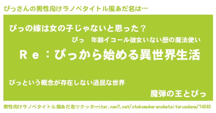 | ヘコむあだ名 | 『ぴっ太郎』『ぴっ(苦笑)』『豆乳』 |