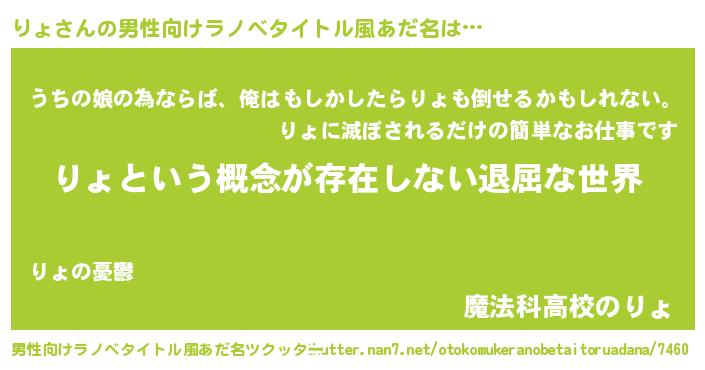 りょさんの男性向けラノベタイトル風あだ名をツクッター!