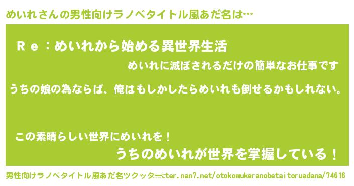 | 意味不明あだ名 | 『めいれフォーエバー』『自称めいれ』 |