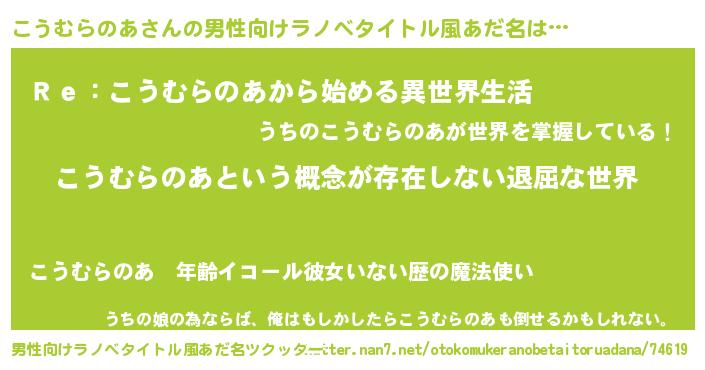 | 伝説のあだ名 | 『古より伝わる吟遊詩人こうむらのあ』 |