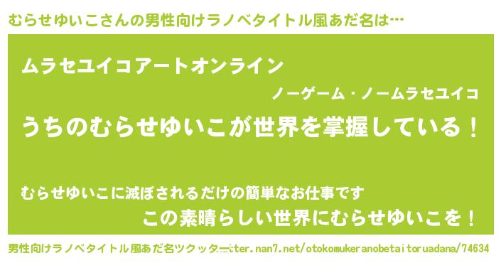 | ヘコむあだ名 | 『むらっふぃ~』『むらせゆいこ(小並感)』 |