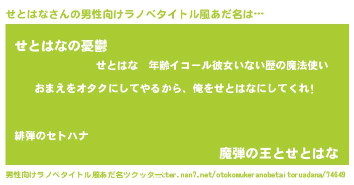 | ヒーロー風カッコイイあだ名 | 『正義の使者せとはな』『仮面セトダー』 |